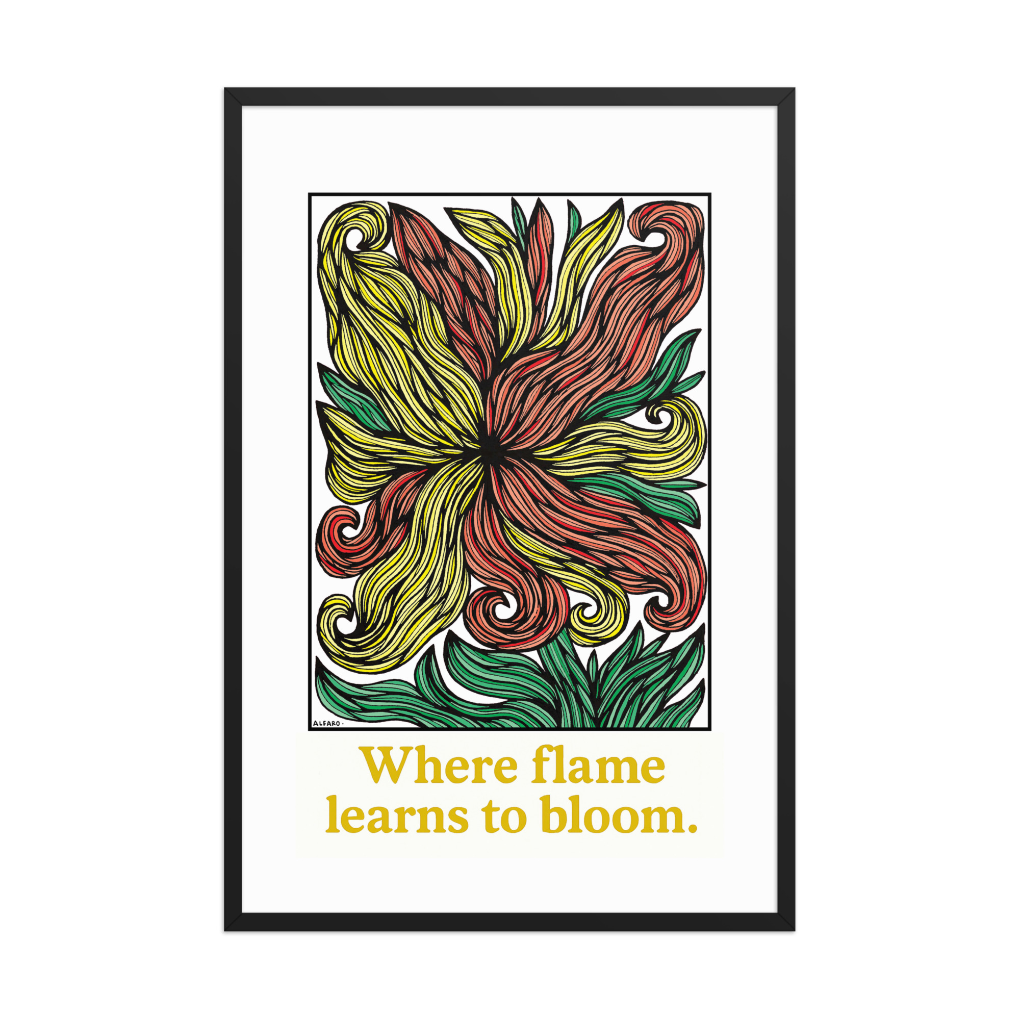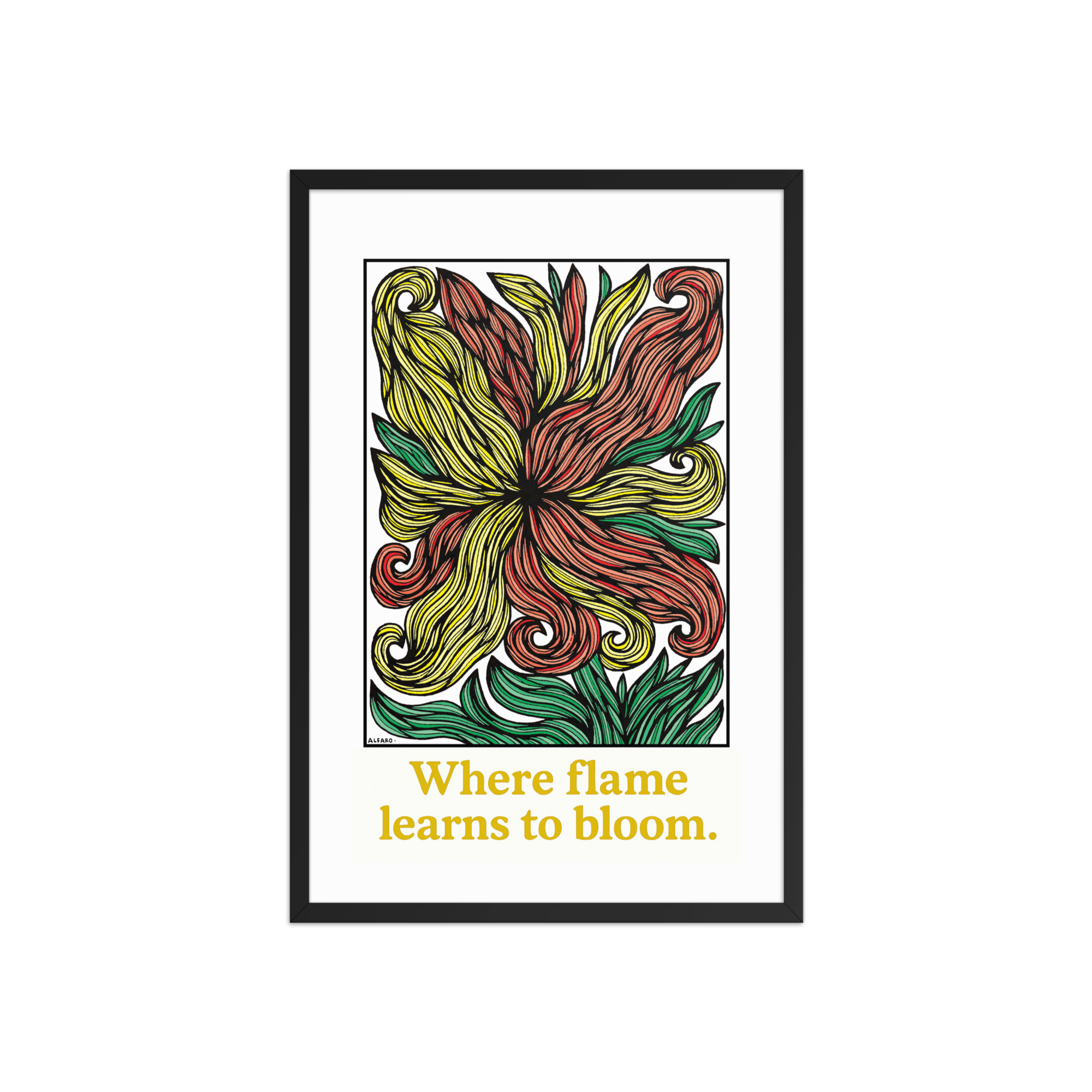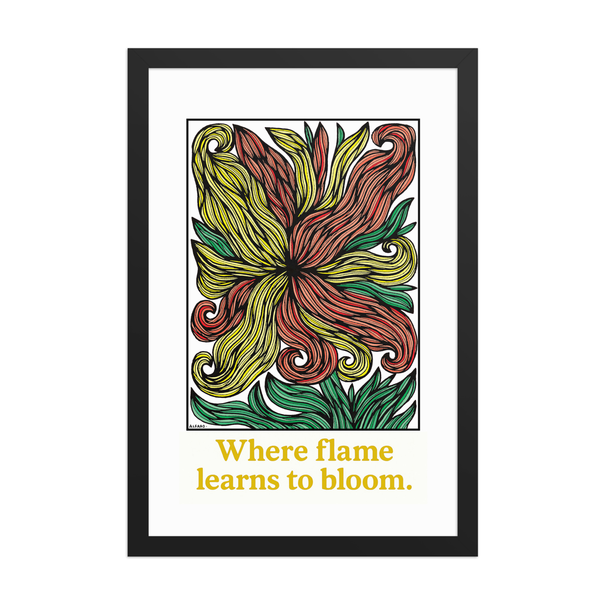 Allow this piece to live with you as a quiet reminder: even the fiercest fire can learn to bloom.